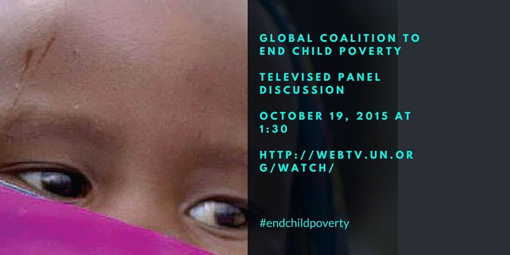 October 19, 2015. Today the Coalition Against Child Poverty, which Harvard FXB Center co-founded in 2014, marks its official launch by co-hosting a United Nations side event on Child Poverty and the SDGs. The event will focus on how the SDGs can help children escape poverty and accelerate efforts to end poverty for all.