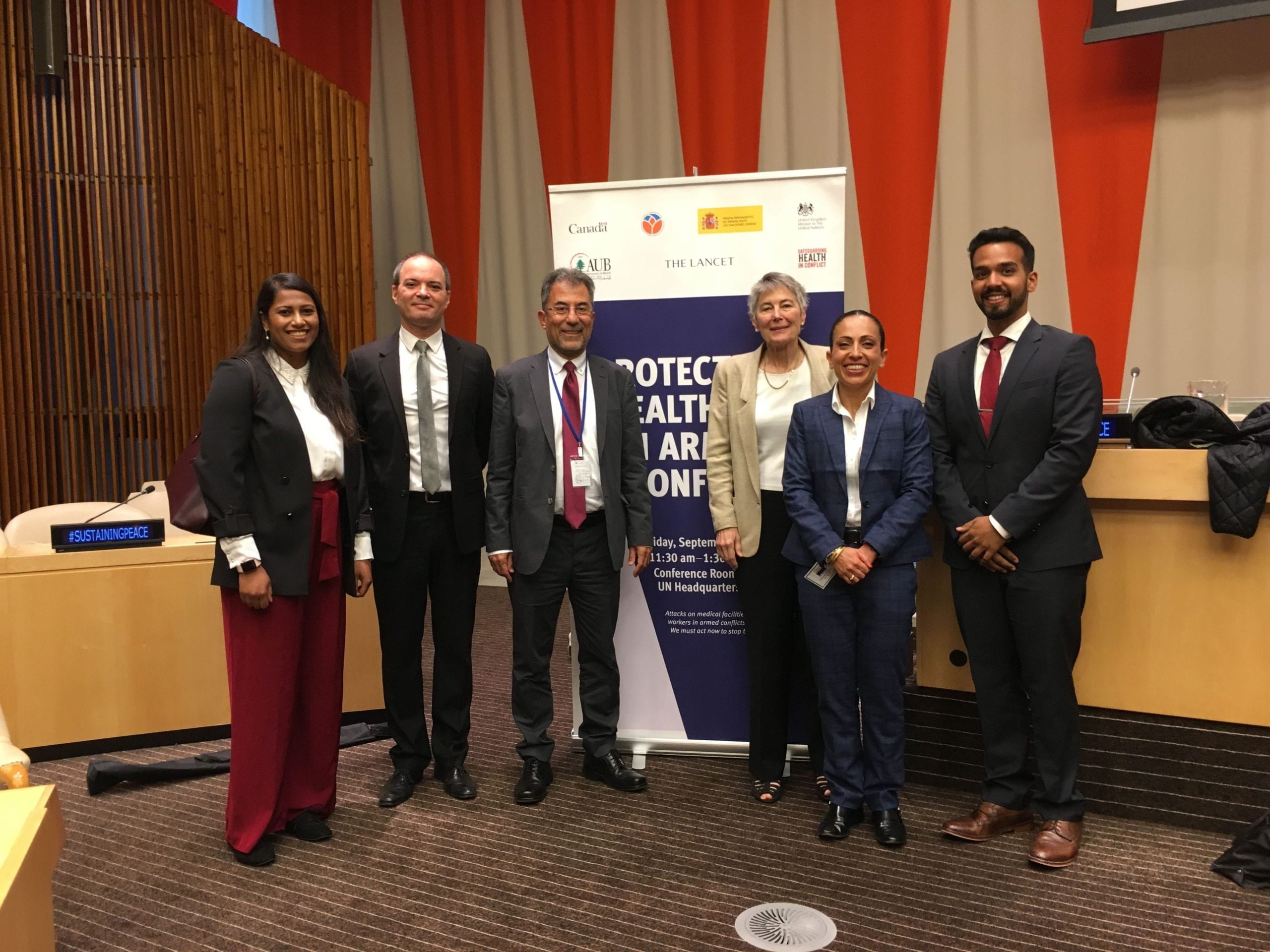 On Friday, September 22, 2017, members of Harvard FXB’s Burden of War Project team, including FXB director and co-chair of the Lancet-American University of Beirut Commission on Syria, Dr. Jennifer Leaning, participated in the high-level side event, Protecting Health Care in Armed Conflict at the 72nd United Nations General Assembly. The Permanent Missions of Canada, the Netherlands, Spain, and the United Kingdom, in collaboration with the Lancet-AUB Commission on Syria and the Safeguarding Health in Conflict Coalition, hosted the event.