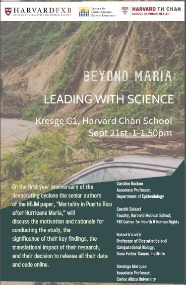 During the week of the first year anniversary of the landfall of Hurricane Maria in Puerto Rico, several of the senior authors of the NEJM paper will discuss the motivation and rationale for the study, the significance of their findings, the impact of their research, and their decision to release all their data and code online.