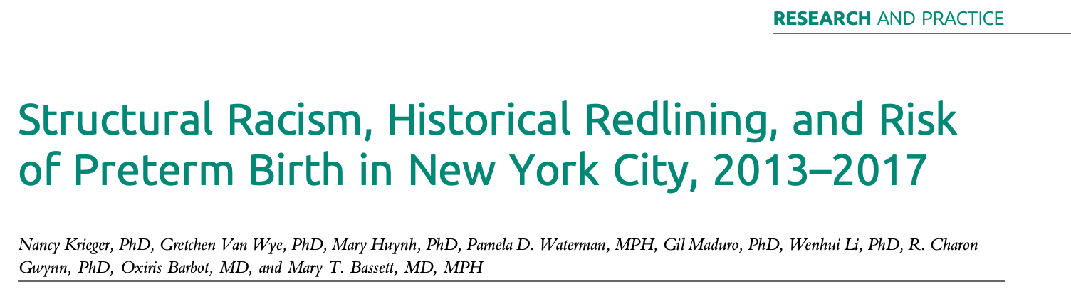 A new study published this week in the American Journal of Public Health explores the long-term impact of historical redlining on preterm births in New York City.