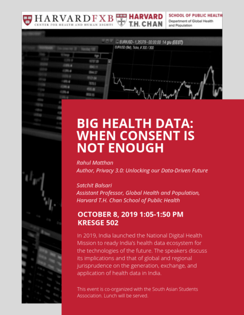 The talk will be held on October 8, 2019 at 1:05 pm in Kresge 502. The event is co-organized by the Harvard FXB Center for Health and Human Rights, the Harvard T.H. Chan School of Public Health Department of Global Health and Population, and the South Asian Students Association.