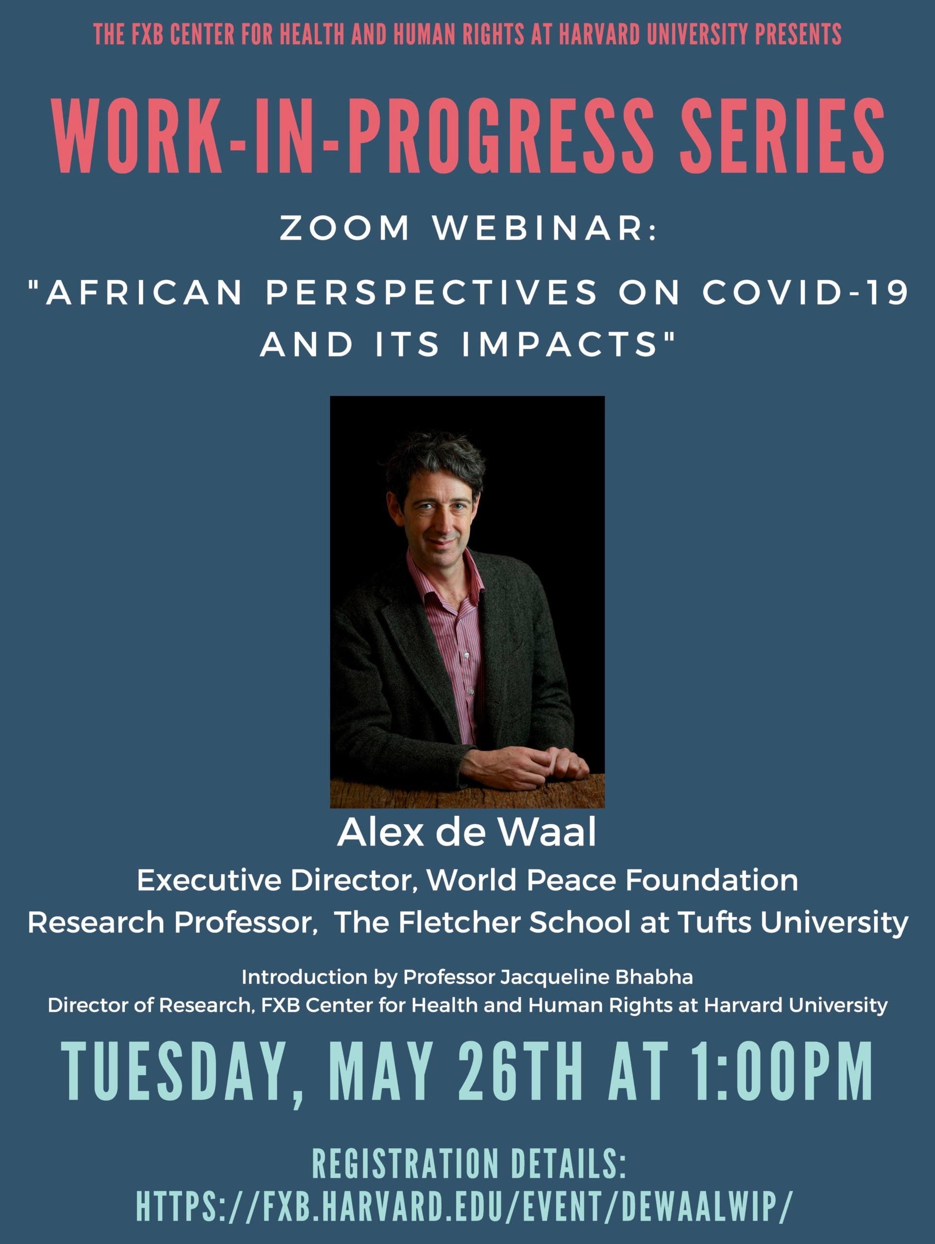 On Tuesday, May 26, the FXB Center for Health and Human Rights at Harvard University will host the next event in its Work-in-Progress Series.