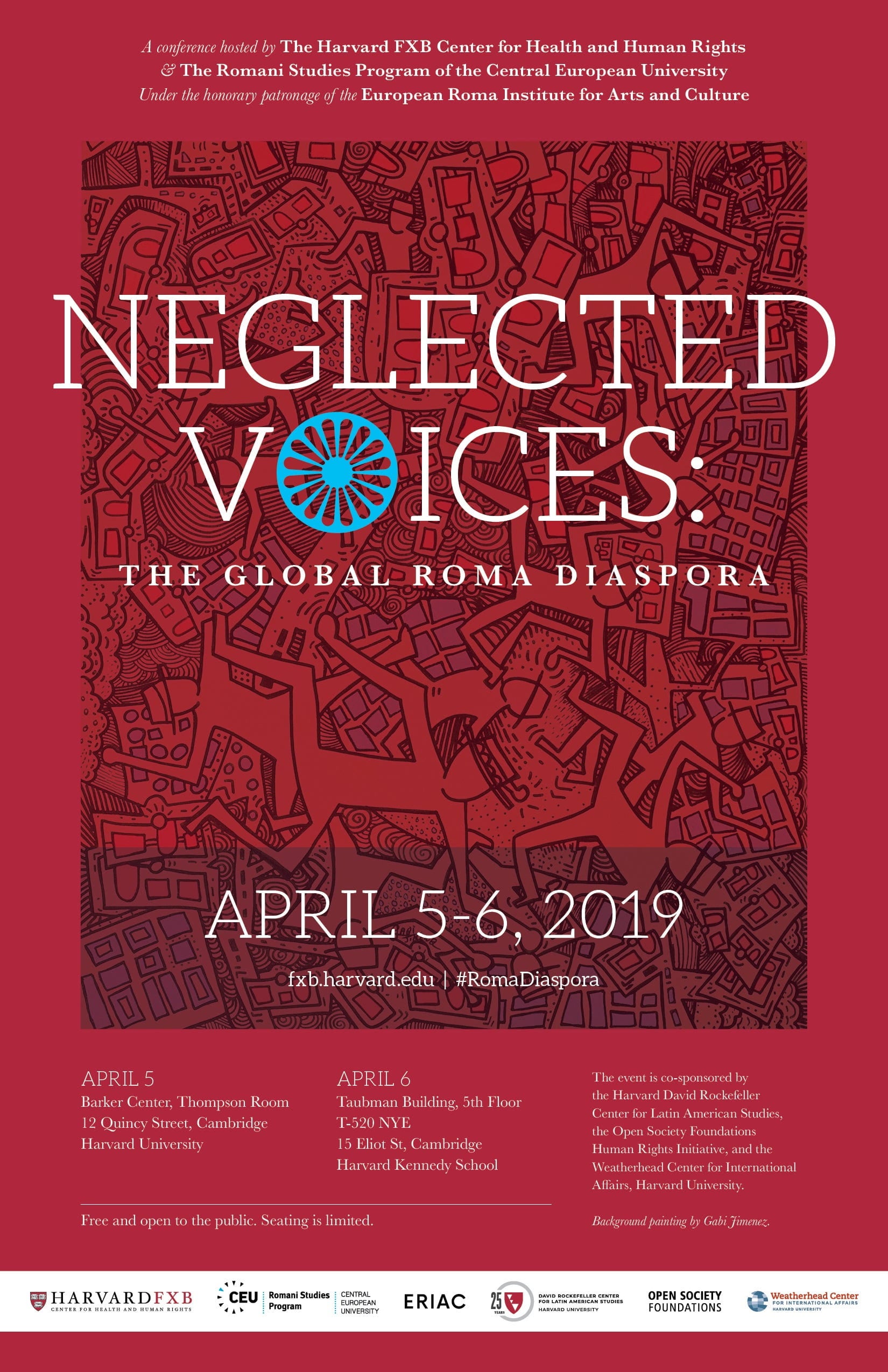 On April 5 (9AM-6:30PM) and April 6 (9AM-1PM), 2019, the Harvard FXB Center for Health and Human Rights and the Romani Studies Program of the Central European University will host Neglected Voices: The Global Roma Diaspora, the seventh Annual Roma Conference at Harvard to mark International Roma Day.